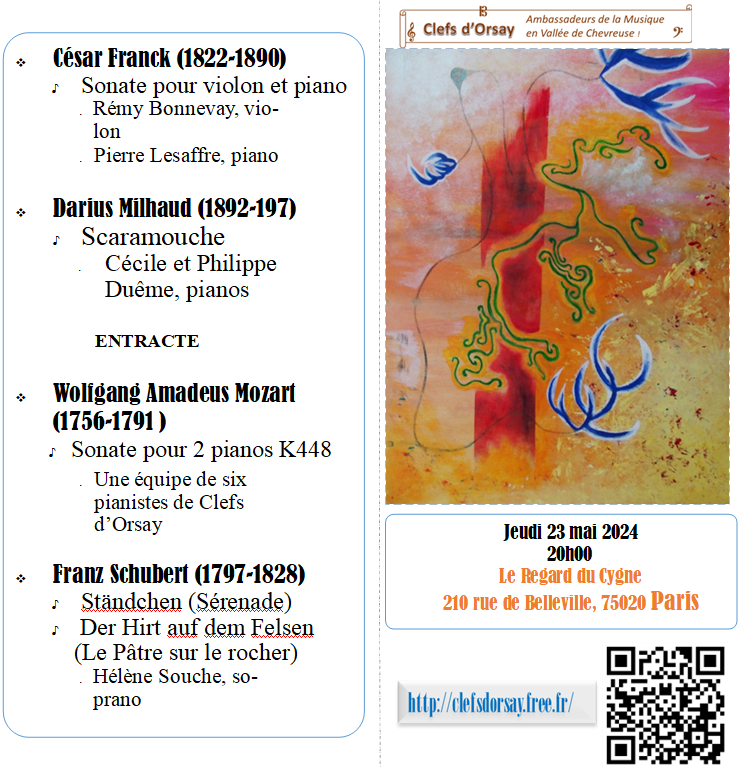 Clefs d’Orsay vous invite à son 2e concert donné au Regard du Cygne, une salle dotée de deux beaux pianos à queue dans le XXe arrondissement parisien.